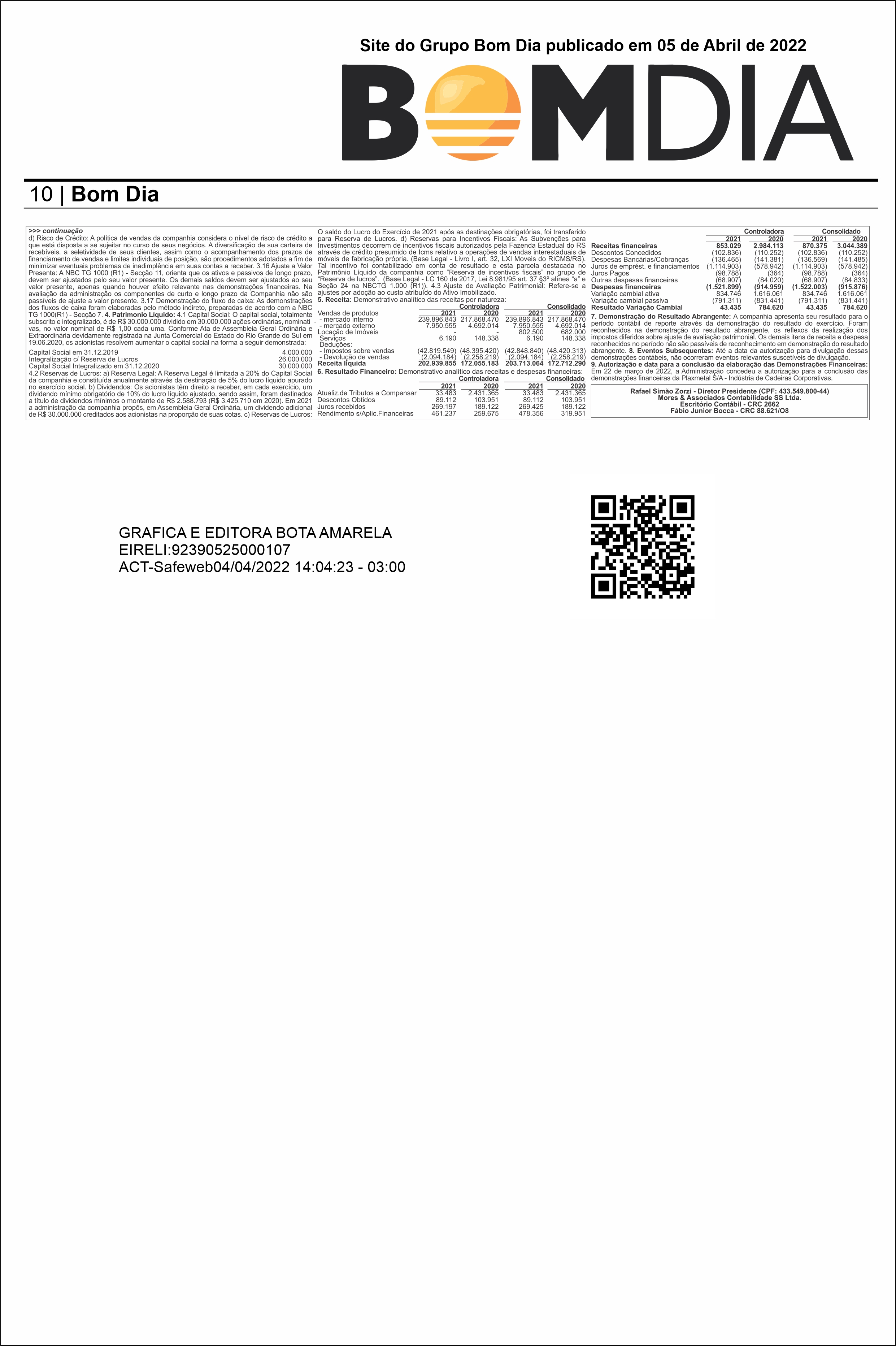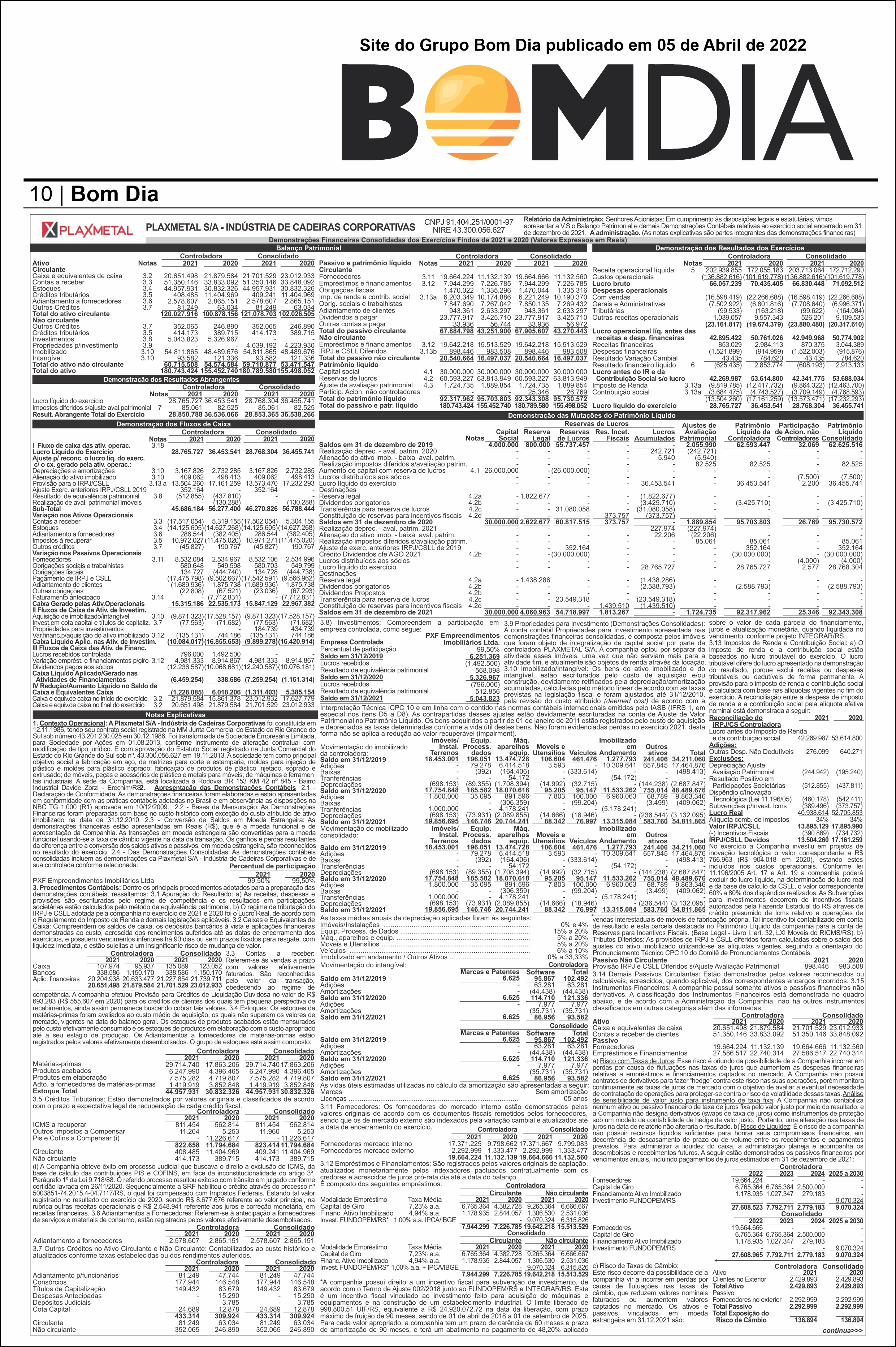 Balanço Plaxmetal 05 Abril 2022