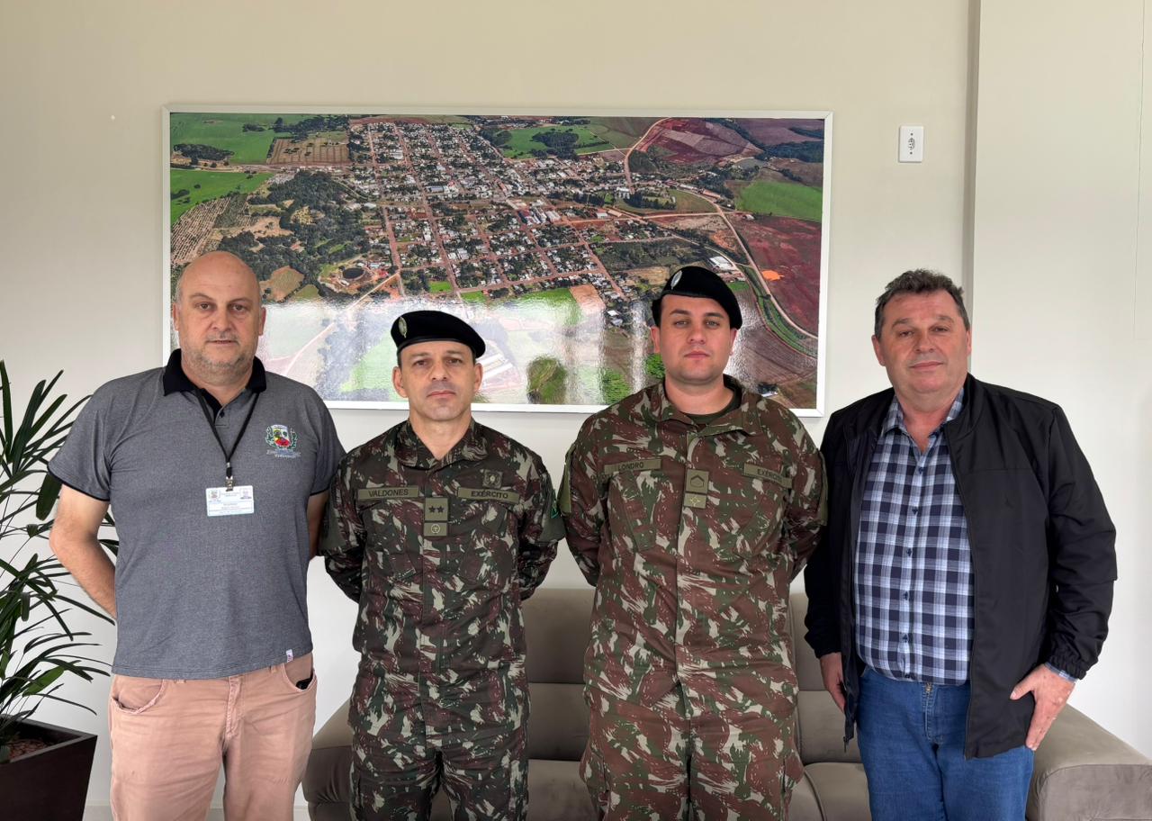A Prefeitura de Erebango recebeu, na tarde desta quarta-feira, 12, a visita do 1º Tenente Valdones Silveira Lemes do Posto de Recrutamento e Mobilização (PRM), e do Soldado Londro, ambos representantes do Exército Brasileiro. Eles foram recepcionados pelo presidente da Junta de Serviço Militar, prefeito Valmor José Tomelero, e pelo secretário da Junta de Serviço Militar nº 102, Rogério Vechiatto.