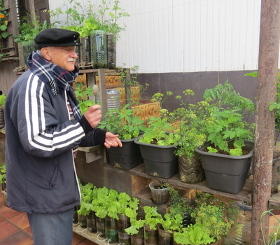 Na horta em sua casa, um dos problemas é a falta de luminosidade no local, mas que mesmo assim consegue colher tudo o que planta. Para Peter, esta é a única maneira de se plantar verduras e legumes na área urbana, pois deste modo as plantas estão livres de contato com animais, como cães e gatos.