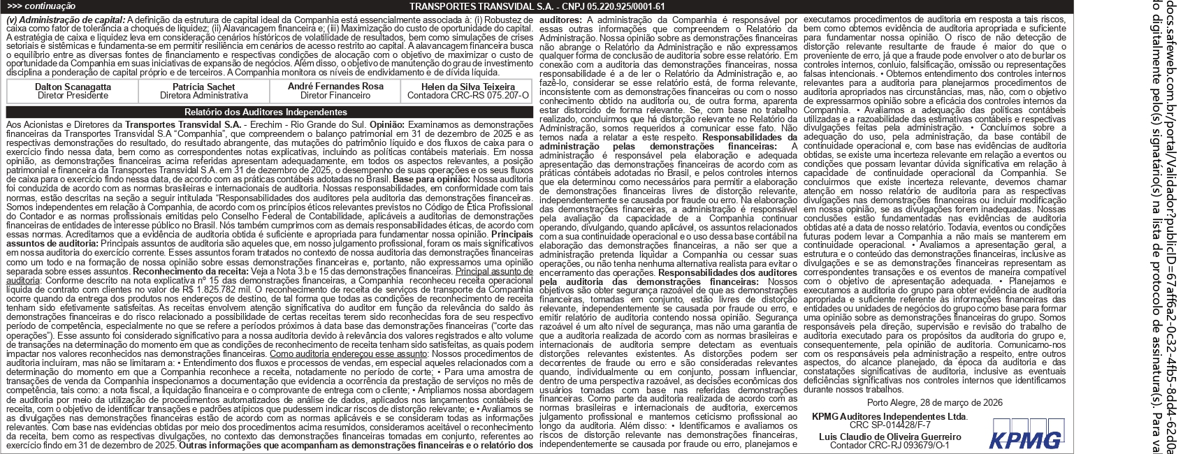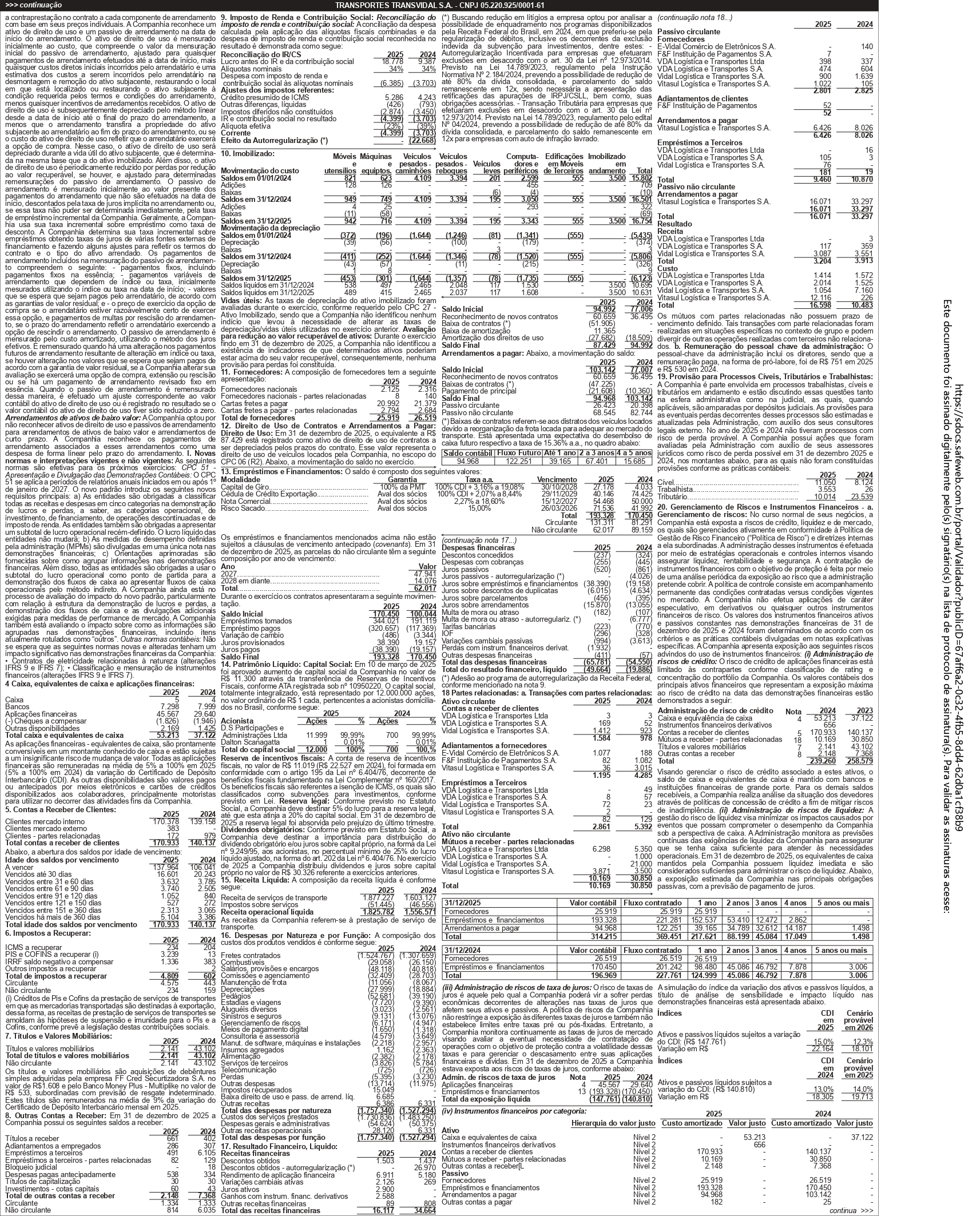 Demonstrações Contábeis levantadas em 31 de Dezembro de 2025 e 2024 (em milhares de reais).