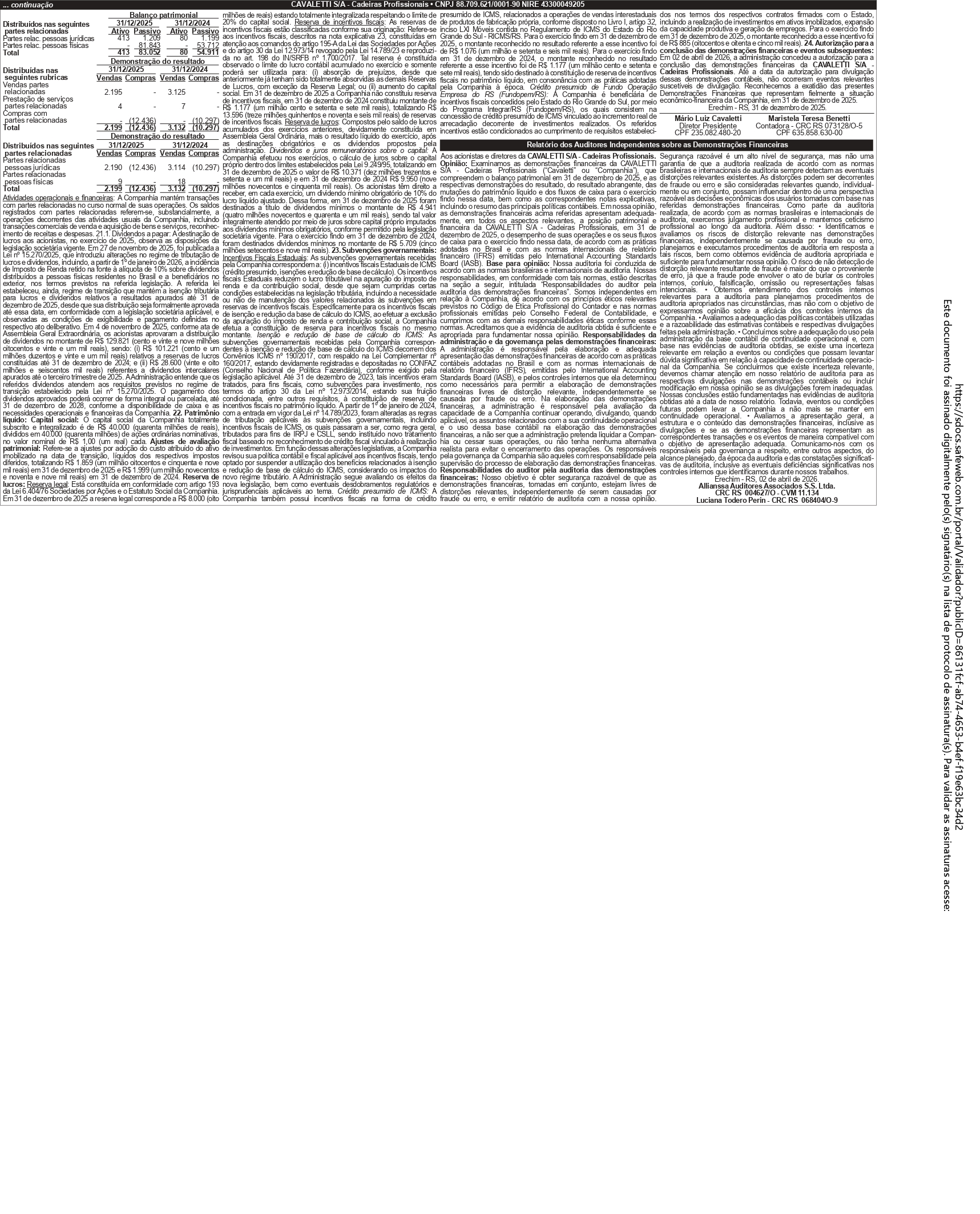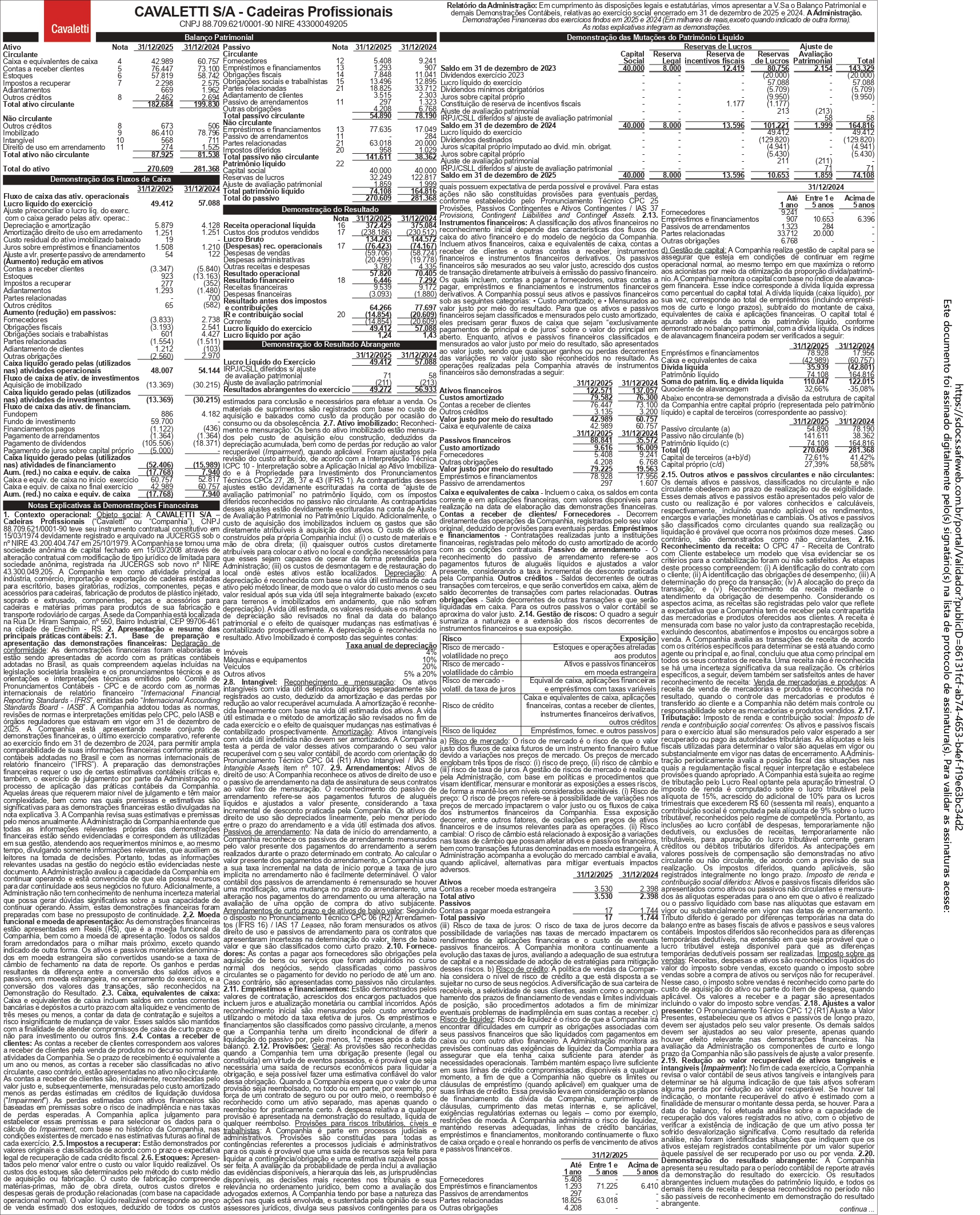 Demonstrações Contábeis levantadas em 31 de Dezembro de 2025 e 2024 (em milhares de reais).