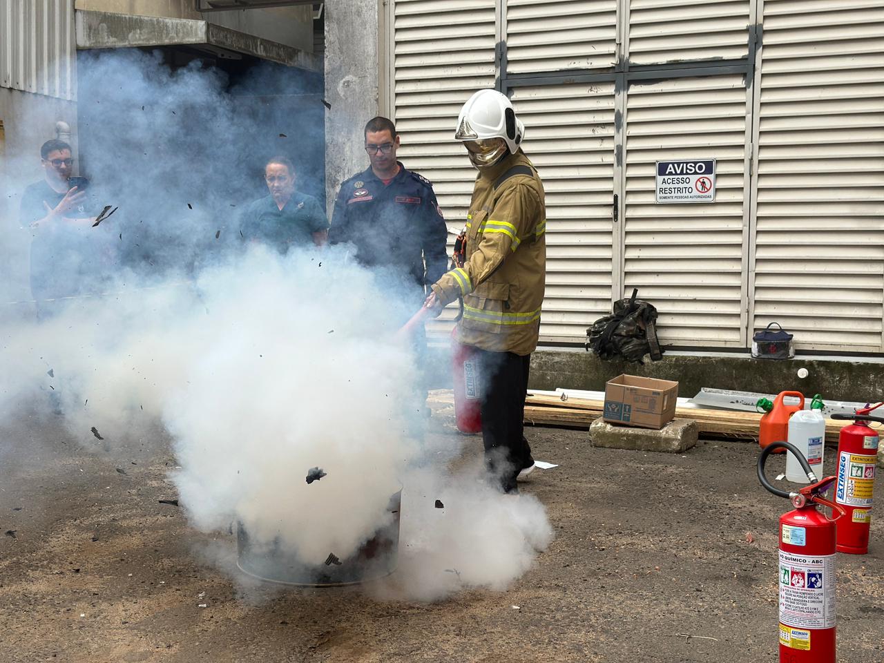 Entre os assuntos abordados, estiveram a classificação e características das classes incêndio, propagação do fogo, classificação e características dos agentes extintores, formas corretas de verificação e manuseio dos equipamentos, além de orientações sobre as condutas mais adequadas em situações de risco. Ao final da capacitação teórica, os brigadistas participaram de uma atividade prática com simulação de incêndio, onde puderam utilizar extintores, hidrante e esclarecer dúvidas, reforçando o aprendizado.