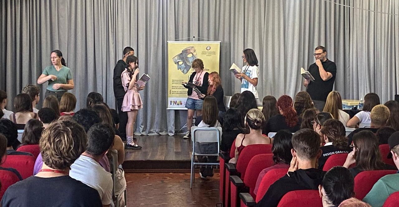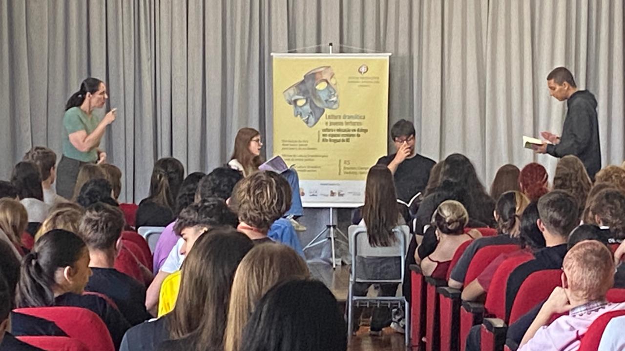 Nas últimas semanas, a Dueto Produções Culturais e Artísticas Ltda. realizou as ações do projeto “Leitura dramática e jovens leitores: cultura e educação em diálogo nos espaços escolares do Alto Uruguai do RS”, referentes ao município de Erechim. Trata-se de um dos projetos selecionados pelo edital Cultura e Educação (SEDAC/RS), no contexto da Política Nacional Aldir Blanc de Fomento à Cultura (PNAB – Primeiro Ciclo), executada pela Secretaria de Estado da Cultura do Rio Grande do Sul.