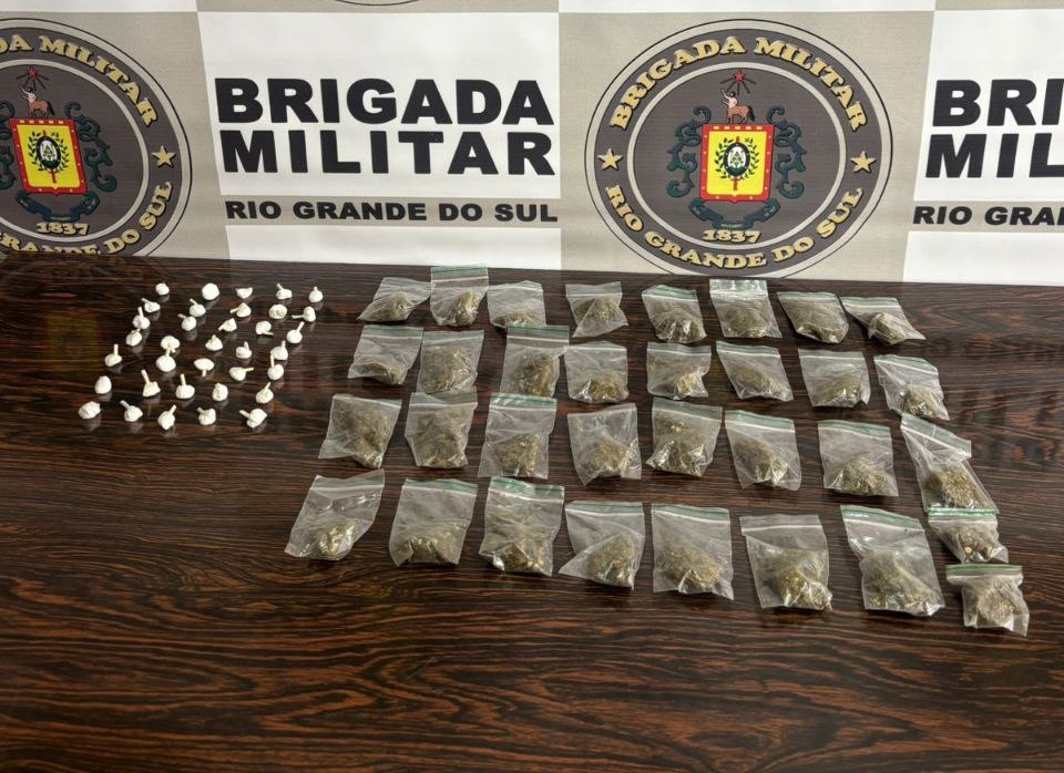Em outra ocorrência, ainda em Aratiba, guarnição apreendeu 33 porções de maconha e 35 porções de cocaína.