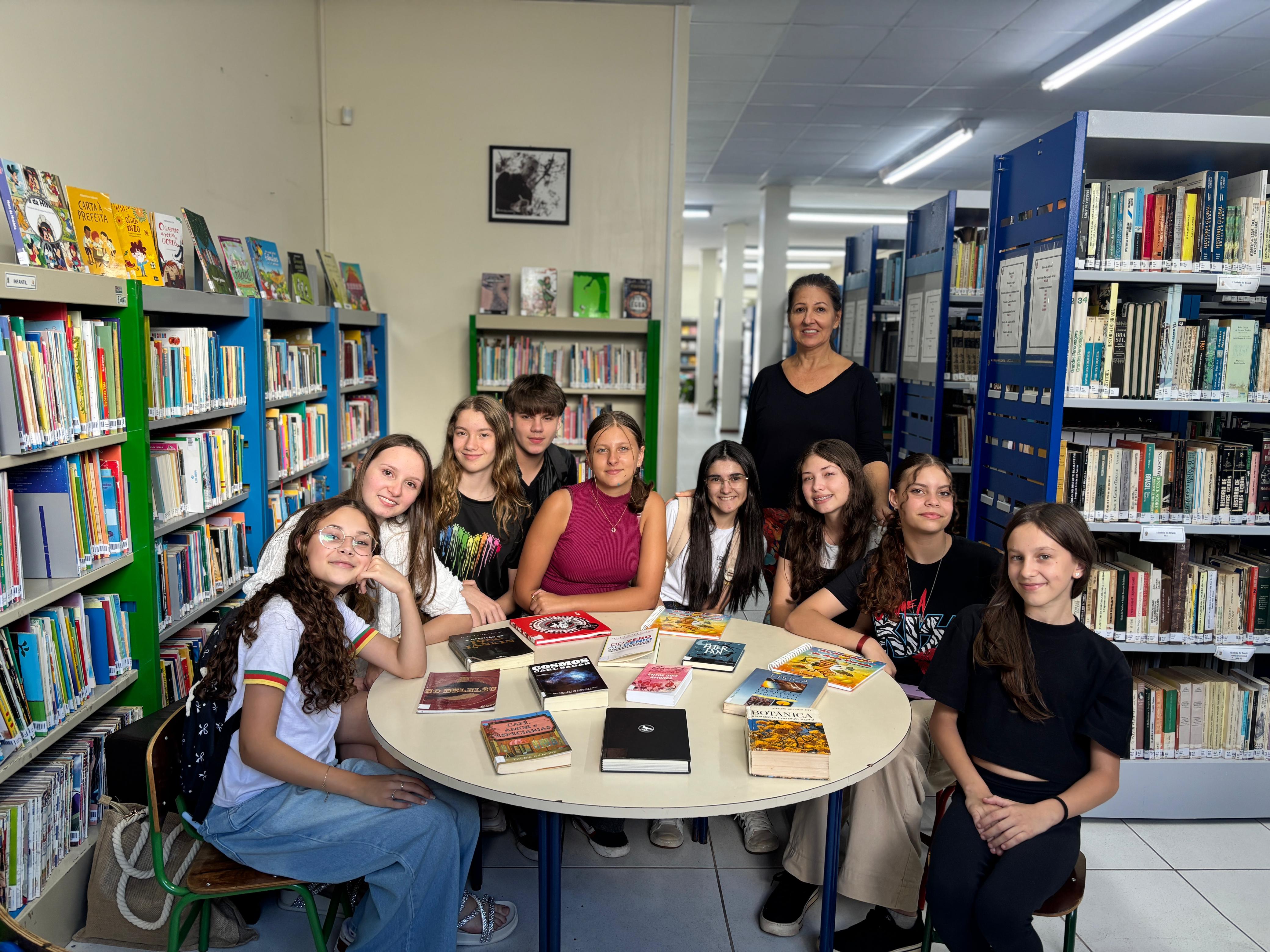 Além das atividades na escola, os integrantes do clube — Maria Isadora Sauri, Yasmin Bianca Salcher, Yasmin Vitória de Oliveira, Carolina Brondani, Lauren Eduarda da Cruz Chagas, Laura Scotton dos Santos, João Henrique Pereira, Ana Júlia Bergonzi Herrmann e Shara Roberta dos Santos de Oliveira — participam semanalmente de contações de histórias para crianças dos anos iniciais na biblioteca pública.
