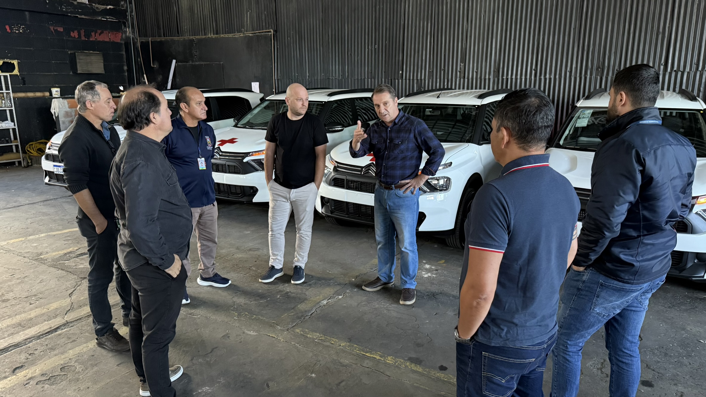 Nesta segunda-feira, dia 27, o prefeito Paulo Polis e o secretário de Saúde, Vianei Mueller, estiveram no setor de Transportes da Secretaria Municipal de Saúde, que recebeu três novos veículos com capacidade para sete passageiros cada. A aquisição integra o processo contínuo de renovação e ampliação da frota, fundamental para qualificar o atendimento à população.